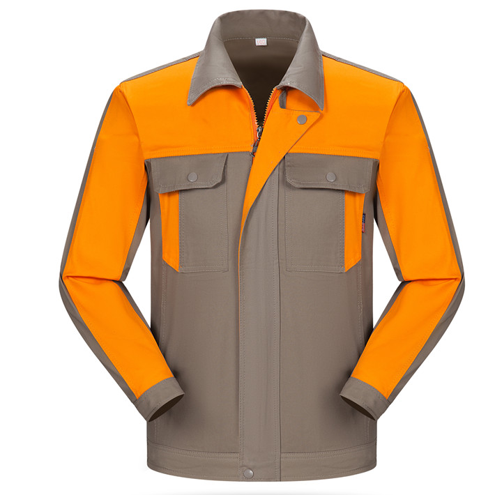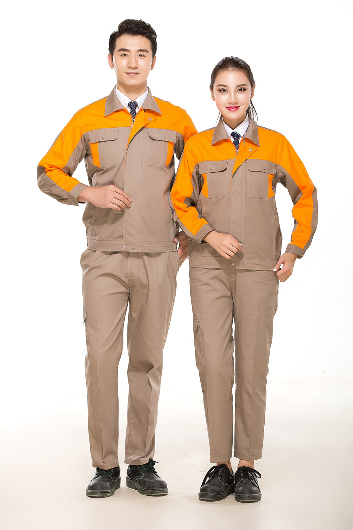 淮南全棉工作服定做款式灰色拼桔黃色長(zhǎng)袖套裝GZ-8017