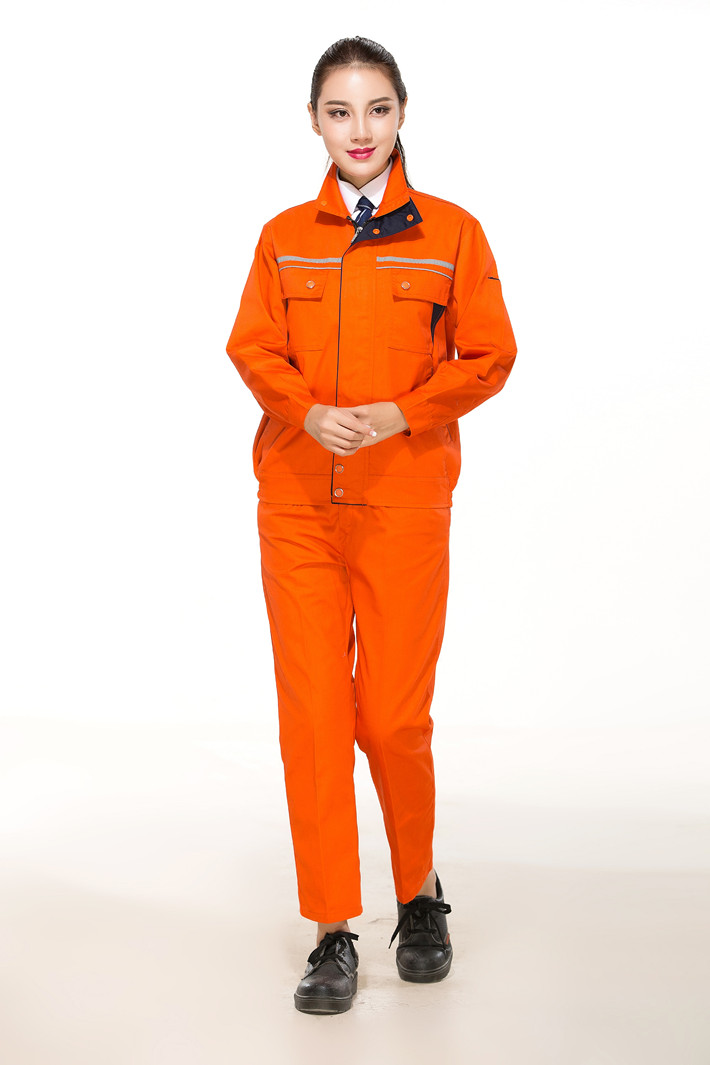 淮南工作服定做廠家定制煤礦機(jī)械工廠桔黃色立領(lǐng)拼色GZ-8024