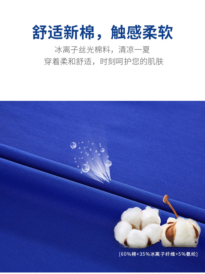 產(chǎn)品成分: 60%棉 35%冰離子纖維 5%氨綸