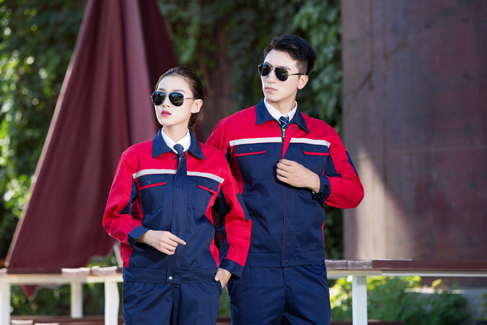 滌棉反光條藏青色拼紅色馬鞍山工作服GZ8012