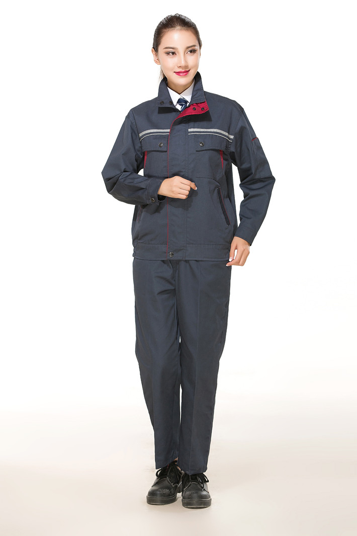 滌棉深灰色立領(lǐng)拼色拉鏈式反光條工作服長袖套裝GZ-8029