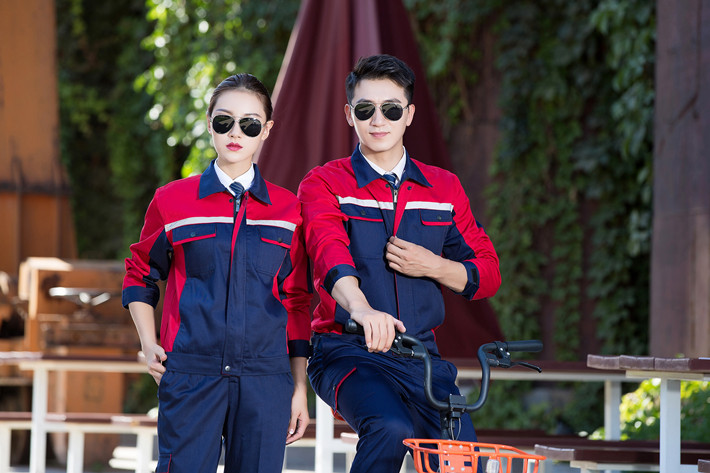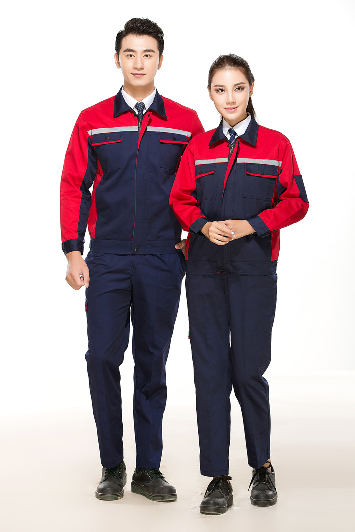 滌棉藏青色色拼紅色工作服套裝GZ-DM8012