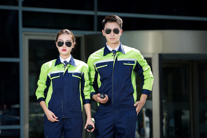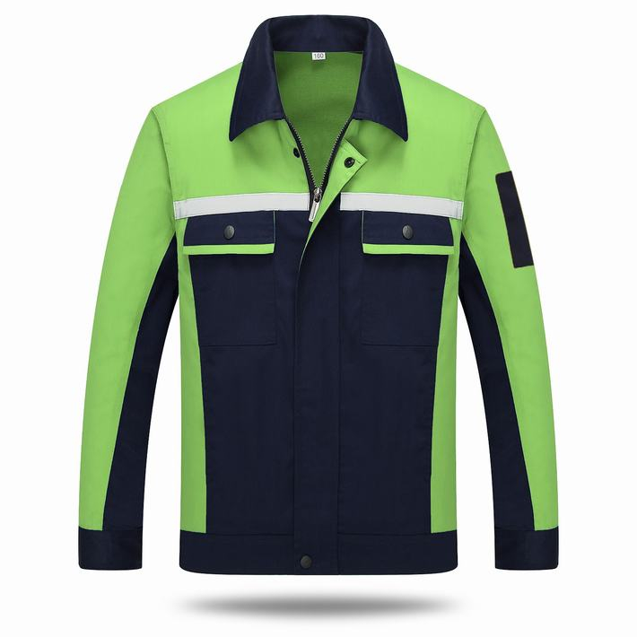 滌棉藏青色拼綠色反光條工作服長袖套裝GZ-DM8016