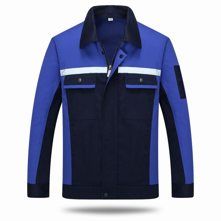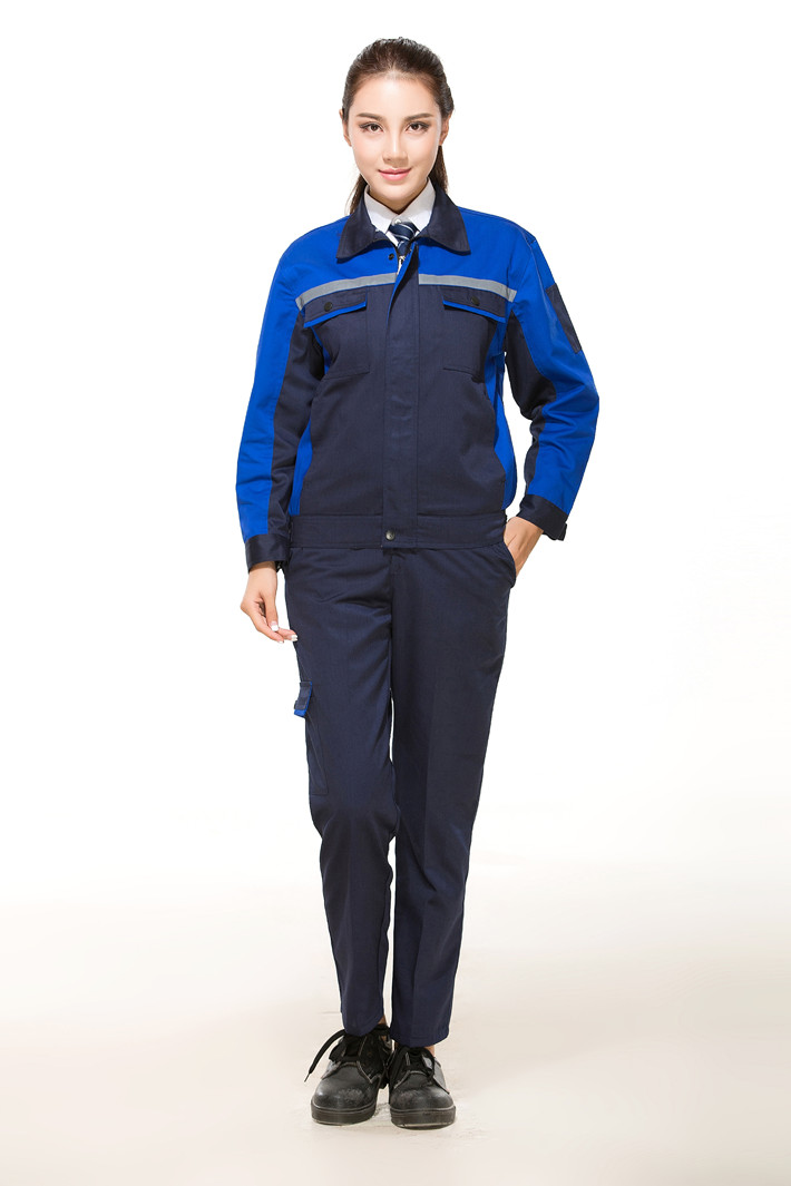 滌棉藏青色拼藍(lán)色反光條工作服套裝GZ-FGT8011
