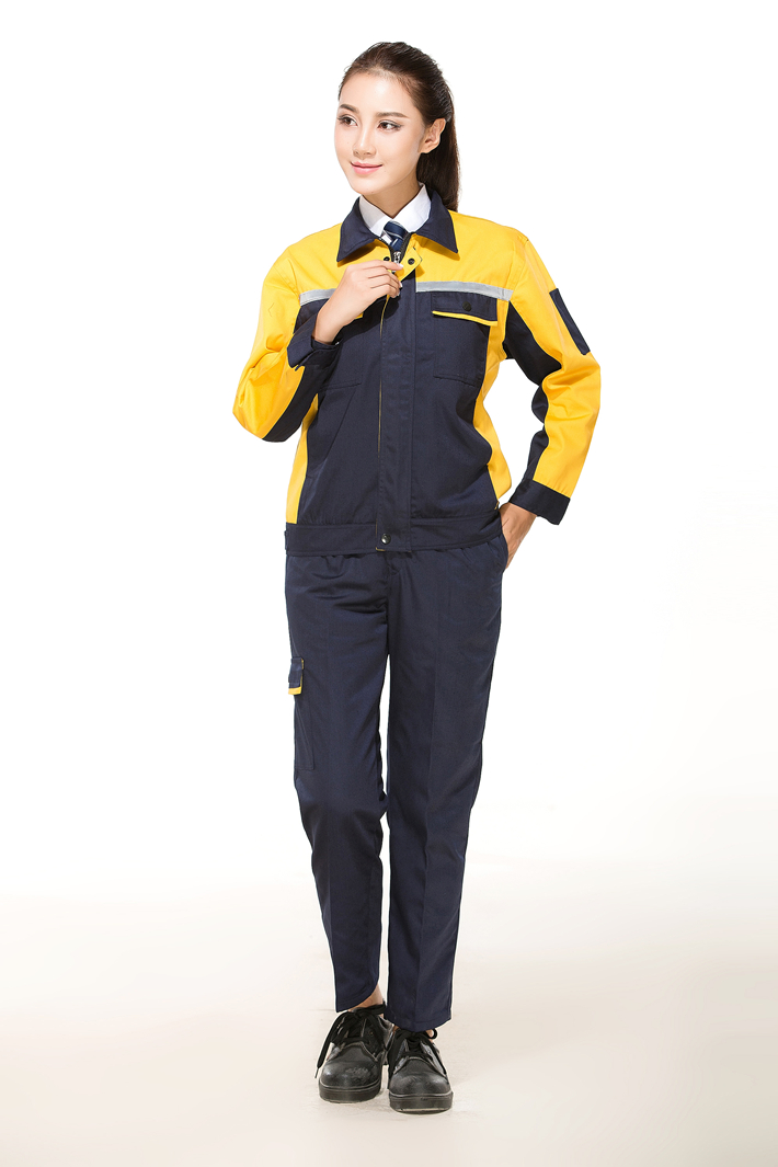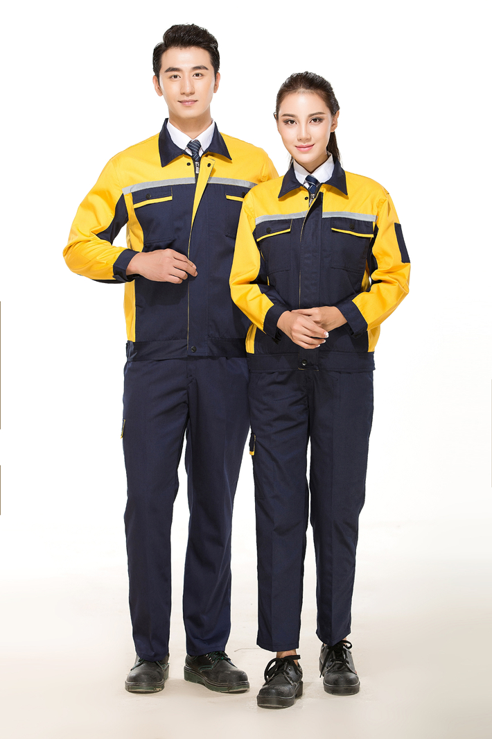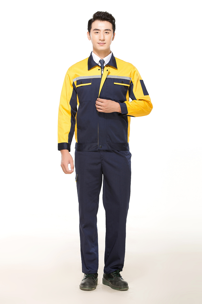 滌棉藏青色拼黃色反光條工作服長袖套裝GZ-FGT8015