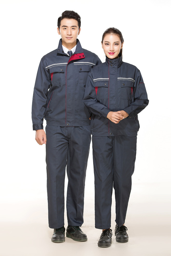 滌棉深灰色立領(lǐng)拼色拉鏈?zhǔn)椒垂鈼l工作服長袖套裝GZ-FGT8029