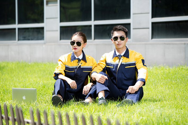 合肥工作服定做款式藏青色拼黃色長袖工作服套裝GZ-8015